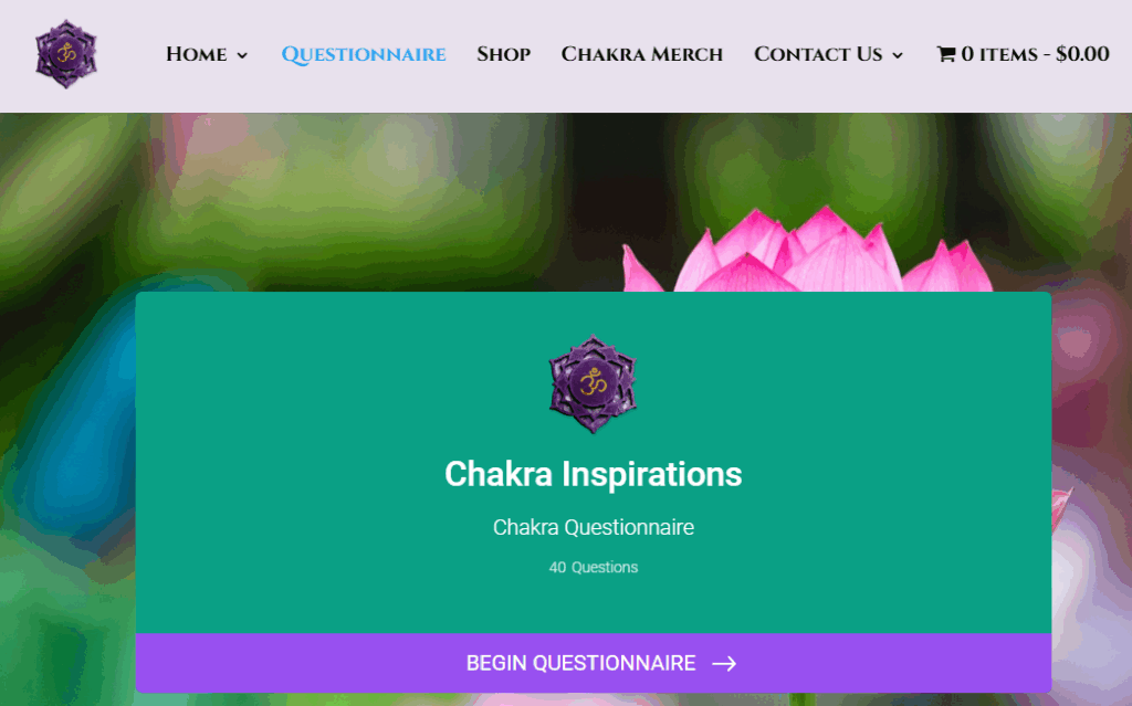 Do you want to know what chakra you should work on? Take our questionnaire, it’s impressively accurate. Only 35 questions and it doesn’t require your email address to view your results!